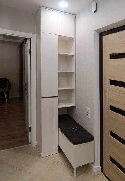 В этом проекте перед нами стояла задача создать современную, светлую и визуально лёгкую прихожую, которая будет выглядеть статусно, но при этом останется максимально практичной для ежедневного использования.