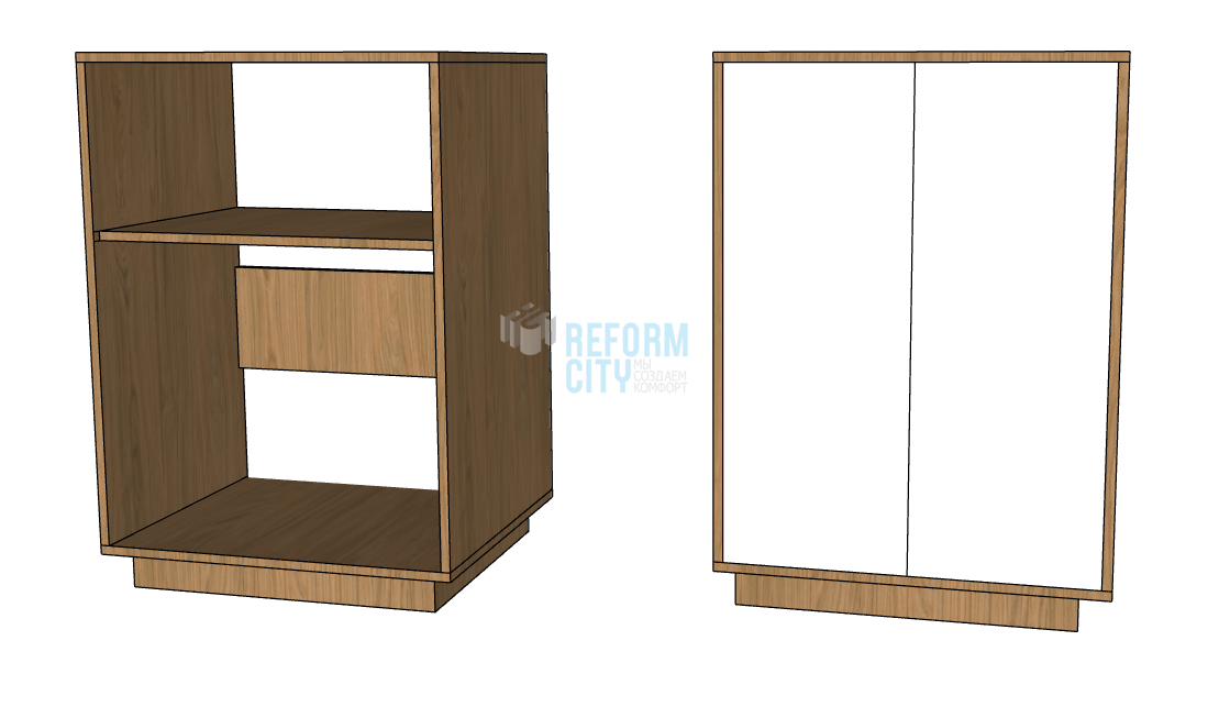 Фасады из МДФ толщиной 16 мм, окрашенной в эмалью по каталогу RAL в цвет 9003 (белый). Окрашивание с 1 сторон, обратная сторона фасадов – белая ламинация.
