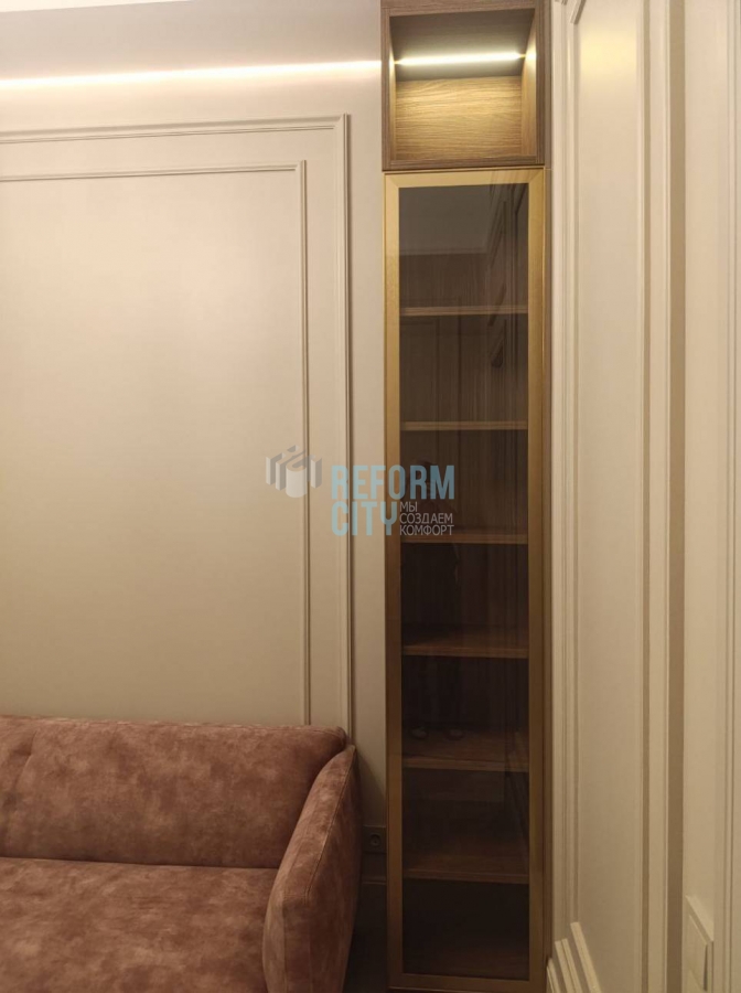 На верхних открытых антресолях предусмотрена горизонтальная подсветка (светодиодная лента). Свет теплый белый 3200К.